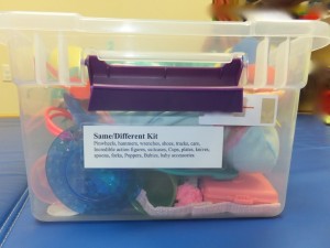 Requesting and understanding Symbolic Language: Take pictures of all of the items in the kit. I’d also add line drawings and PCS symbols of the items. Then you can work on requesting first with actual objects, then photos and then symbols. If your clients are having a hard time transitioning between photos to PCS/Boardmaker symbols, try using a photo editing program and using the “cartoon/comic” page. These will create a black and white image with the lines in the photos.
